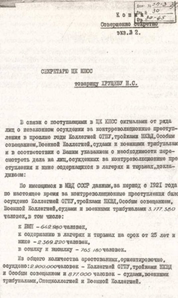 Va notato che da quando istituito per Decreto il consiglio speciale del NKVD, dal 3 novembre 1934 fino al 1 settembre 1953
