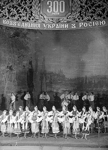 Nel 1954 in URSS venne organizzata una grandissima manifestazione per commemorare il “300° anniversario dell’unificazione di Russia e Ucraina”, un evento che si svolse nel 1654, quando l’etmano dell’esercito cosacco di Zaporozhe, Bogdan Khmeknitskij, richiese un incarico allo zar Aleksej Mikhailovich Romanov (padre di Pietro I).