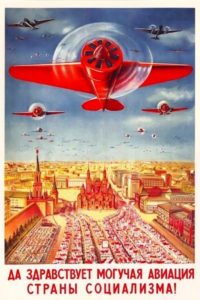 Sono gli anni in cui la produzione stabilita dai piani quinquennali è alle stelle, così come verso le stelle è rivolto, sempre di più, lo sguardo dei sovietici. I falchi dell’aviazione sovietica sono i nuovi miti da celebrare. Veloci, tenaci, temerari, fedeli alla patria, al loro Stalin, sono i conquistatori delle forze aeree della natura. Per le loro caratteristiche, per i successi che otterranno in guerra, il 18 agosto verrà consacrato come giornata di celebrazione dell’aviazione russa.