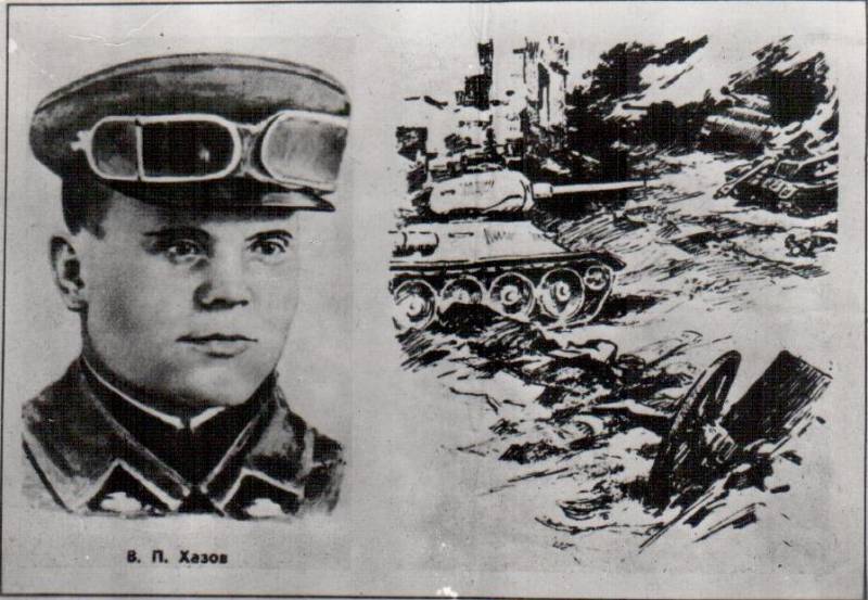 Al comando di una compagnia di carri armati T-34 del 235o battaglione di carri armati della sesta brigata di carri armati del fronte sud-occidentale, il tenente senior Vladimir Khazov si distinse nelle battaglie estive nell’area del villaggio di Olkhovatka. Agendo in un’imboscata, i carri armati sovietici hanno inflitto danni tangibili al nemico in termini di forze ed equipaggiamento. Allo stesso tempo, la compagnia comandata da Khazov si distinse particolarmente, sconfiggendo una colonna di carri armati tedeschi, caduti in un imboscata.